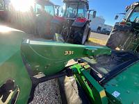 The John Deere 331 rotary conditioner mower is designed to provide efficient cutting and optimal conditioning of forage. It has a cutting width of 3.10 meters (10.17 feet), making it suitable for various applications. This model is equipped with eight discs that carry a total of 16 blades, ensuring a complete and efficient cut. Each disc operates at a speed of 2,986 rpm.