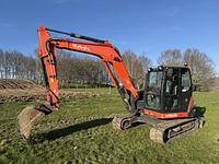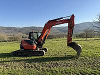 We present the Kubota KX080-4, a mini excavator from the year 2020 with only 2000 hours. This machine features a robust dual circuit hydraulic system, an autonomous refueling pump, and air conditioning for operator comfort. Blade with float. LED lights. Three buckets.